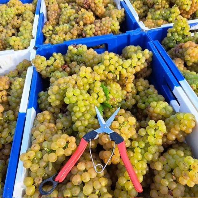 Er werd een eerste keer geoogst die in oktober 2020. Met zo’n 20 plukkers gingen we de rijpe druiven te lijf. 50% van de druiven ( ongeveer 5 trossen per wijnrank ) werden behouden en werden rijp. Een halve dag later kon het vinificatieproces al starten.